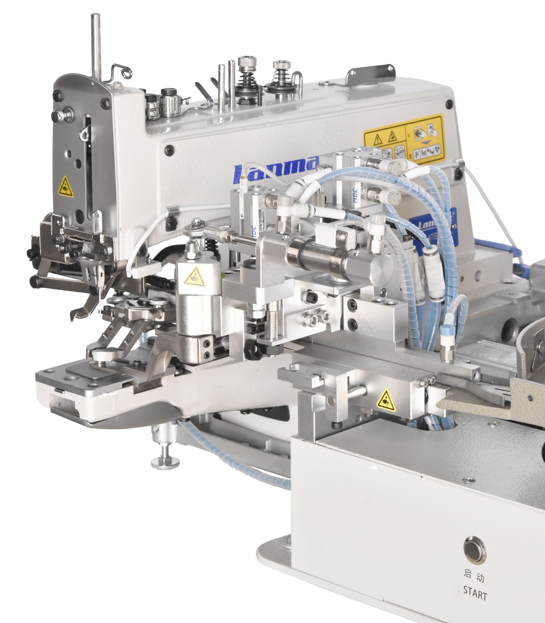 Levantamento de calcador e corte de linha automáticos.