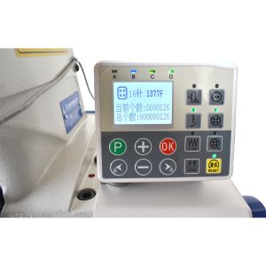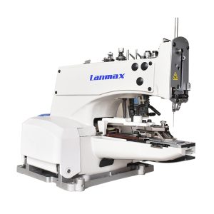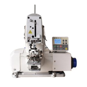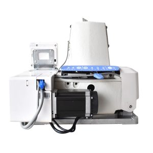 Botoneira direct drive de 01 agulha de base cilíndrica de ponto corrente com lubrificação manual, corte de linha e levantamento de calcador automático por motor de passo.