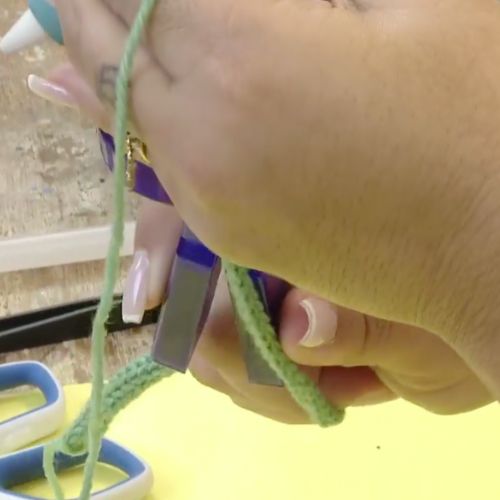 03. Puxe a ponta do fio na parte inferior do Tricotin.