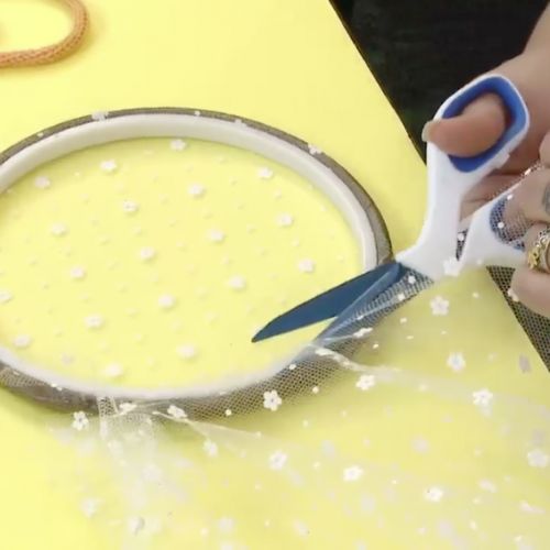 28. Recorte o excesso de tule em toda a volta do bastidor.