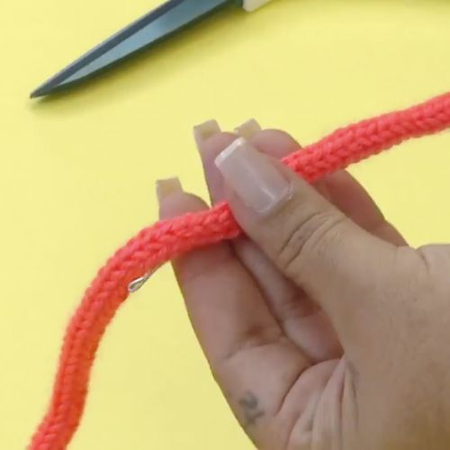 32. E faça o acabamento em ambas as pontas, passando a agulha de crochê por dentro dos últimos pontos e dando uma laçada para arrematar.