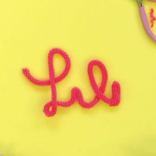 36. Com um pedaço do cordão cortado anteriormente, faça duas bolinhas, colando com cola quente. Use para fazer os pingos, pontos ou acentos da palavra, se houver.