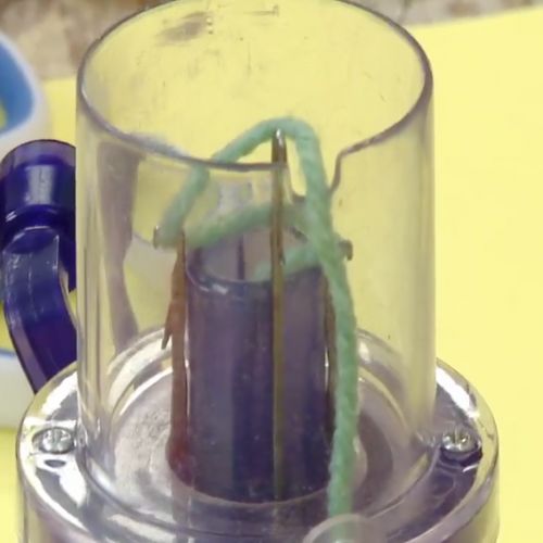 12. Fixe o pregador com peso na ponta do fio que está na parte inferior do Tricotin.