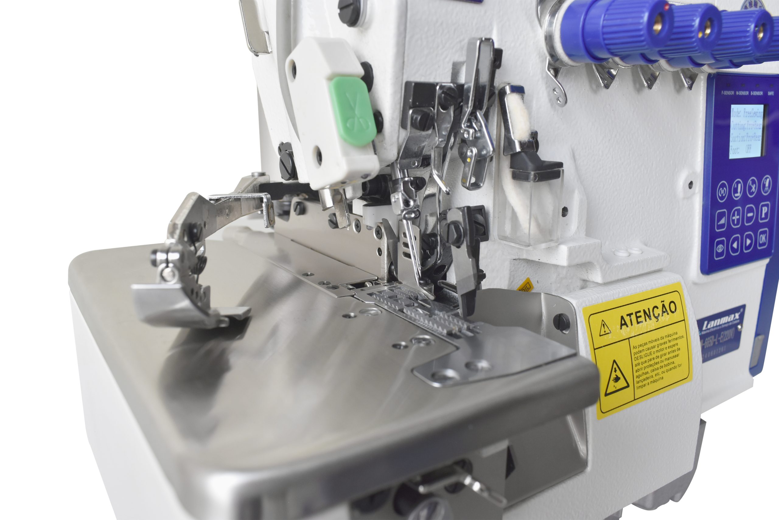 A máquina é equipada com um painel de controle intuitivo, facilitando o manuseio e aumentando a produtividade na costura.
