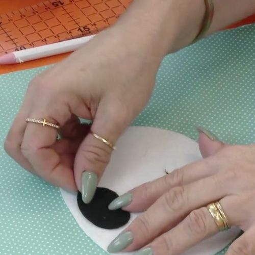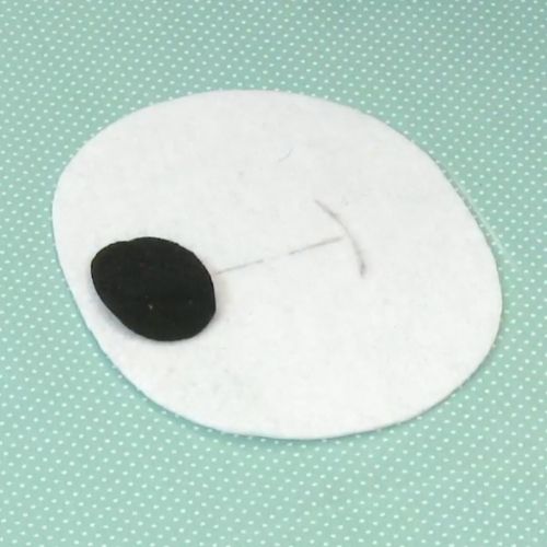 04. Aplique o termocolante sobre um pedaço de feltro Branco e recorte-o de acordo com o molde da carinha.