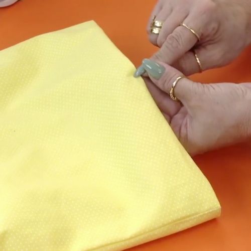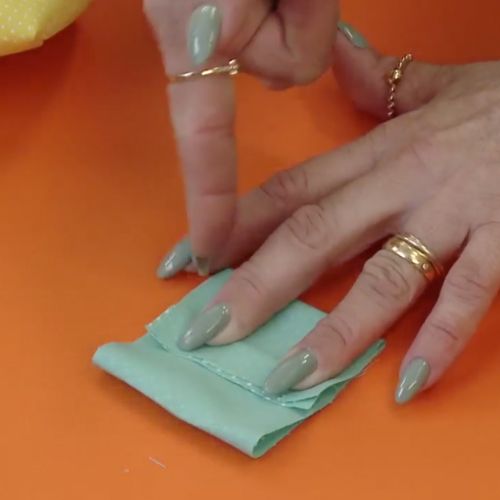 02. Desça com as pontas no centro do tecido e dobre para um dos lados. Passe uma costura nas laterais.