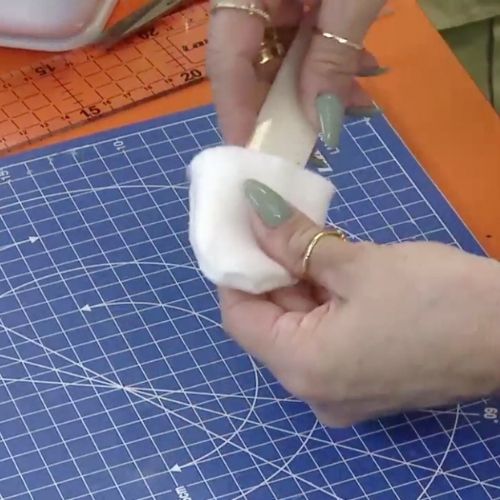 18. Passe um pedaço de estruturante sobre o pino dos olhos, na parte de trás do tecido.