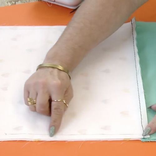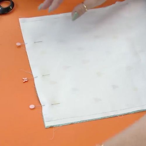 29. Sobreponha o tecido de forro ao tecido principal, direito com direito.