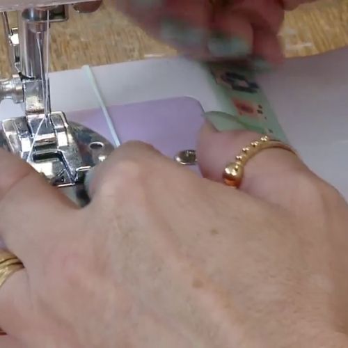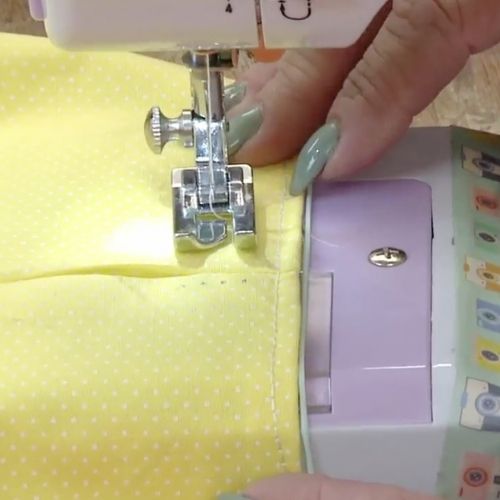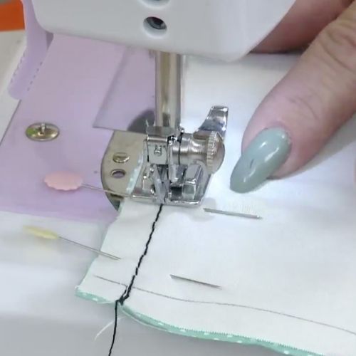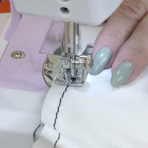34. Passe uma costura na parte superior a um pé de máquina, unindo os tecidos.