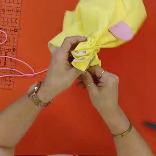 23. Vire no lado direito e faça a outra orelha no mesmo processo.